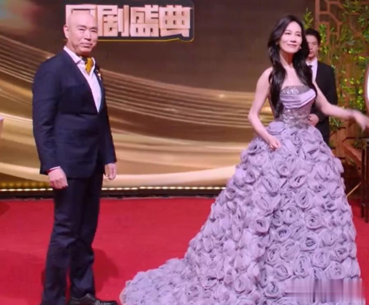不难发现,国剧盛典红毯镜头相当真实,无滤镜还是直播,总算不是假生图了——大众印象中,中年女星总是超越自身年龄保持冻颜,实际上,时光公平对待着每一个人。